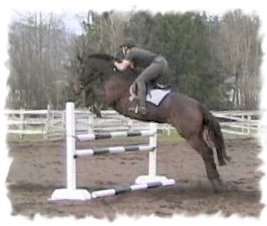 He had two and a half years of dressage training, has a very solid classical foundation, is confirmed in his in-hand work, and was shown through first level very successfully. He was ridden for some months by a local eventer, who states that he is a solid and dependable jumper, with beautiful form and lots of scope. He was ridden by Rick for a year on trails (in western tack!) after we brought him home from his first trainer, and is good in the woods, on trails, and in company. He is a very intelligent and sensitive individual, with strong opinions.