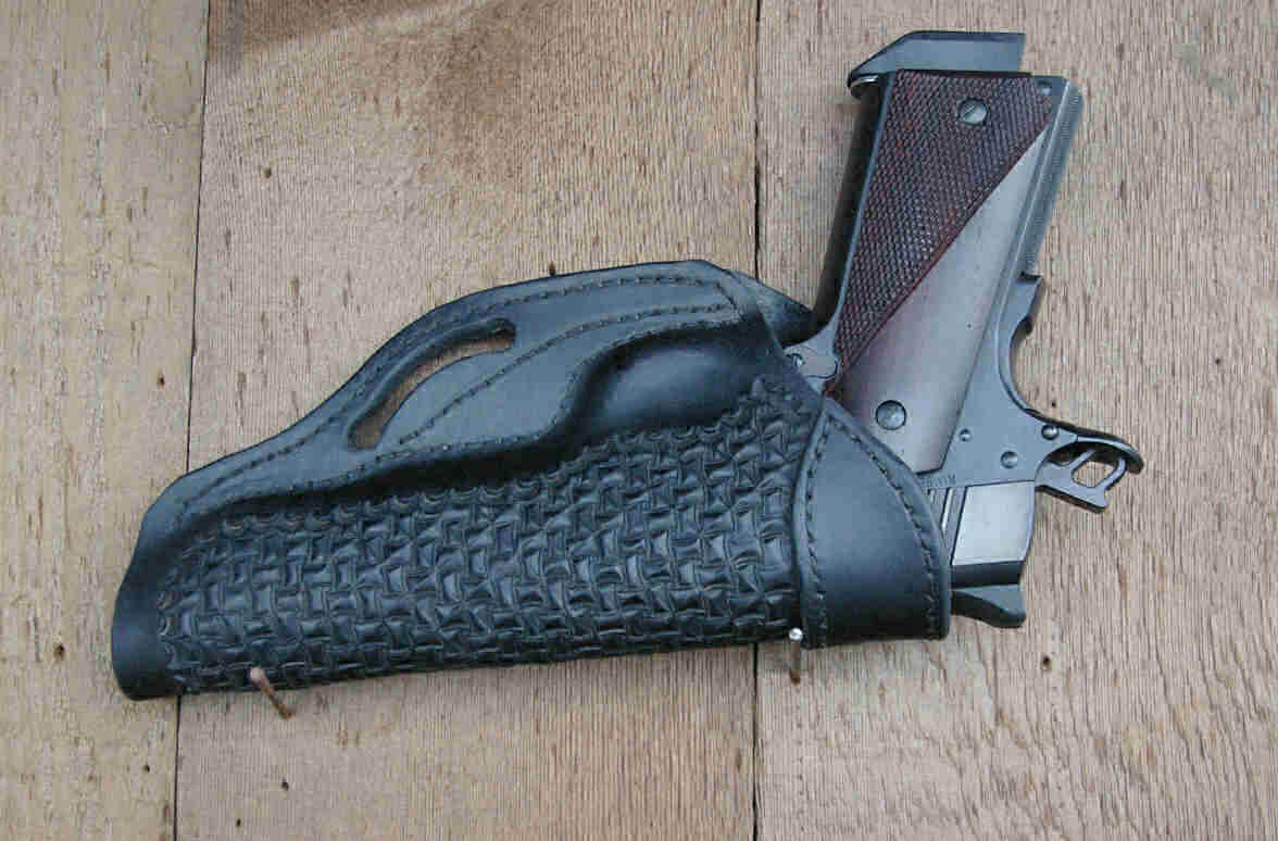 Custom ordered belt and matching holster for full-size 1911 type, modified pancake style |