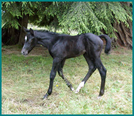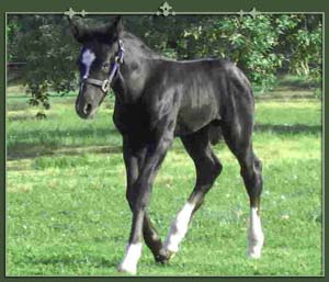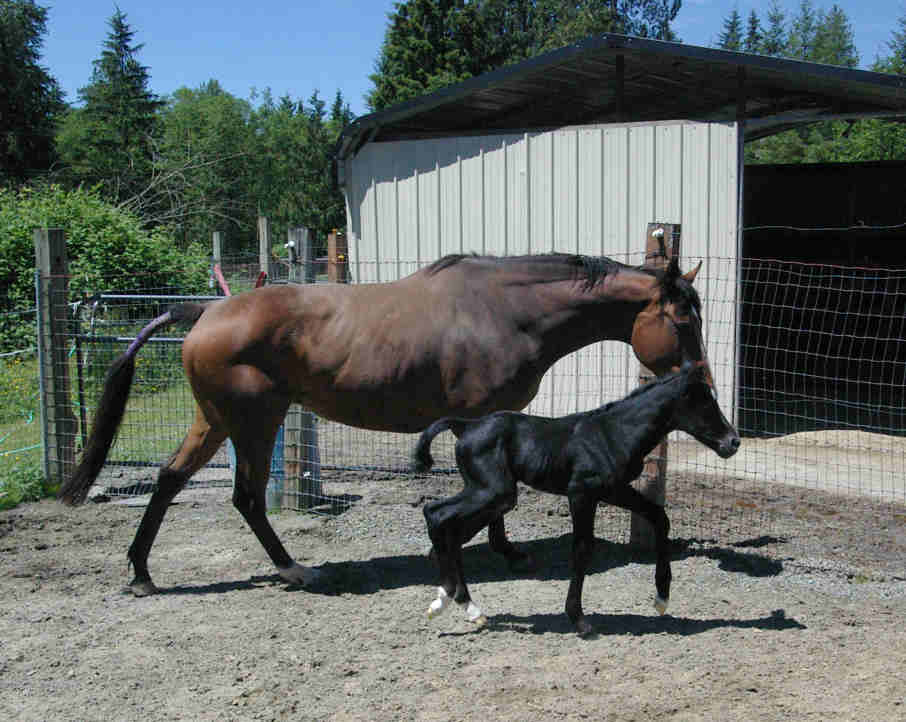 This filly is the "spitting image" of her sire as a foal, right down to the markings.