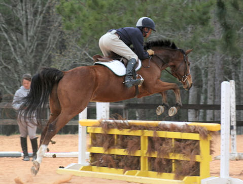 "Buddy" (registered name Somfas Pleasure) is a Thoroughbred gelding that we bred and raised. A full brother to our elder gelding AdAblurr, Buddy was always a very special horse, being tall, perfectly conformed, beautiful and very, very talented. He was bought by Shelly Kerron , produced and taken to HITS Tucson where he won his championships, and then resold to someone in California. We'd love to know where this good gelding is, and that he is doing well for his current owner!