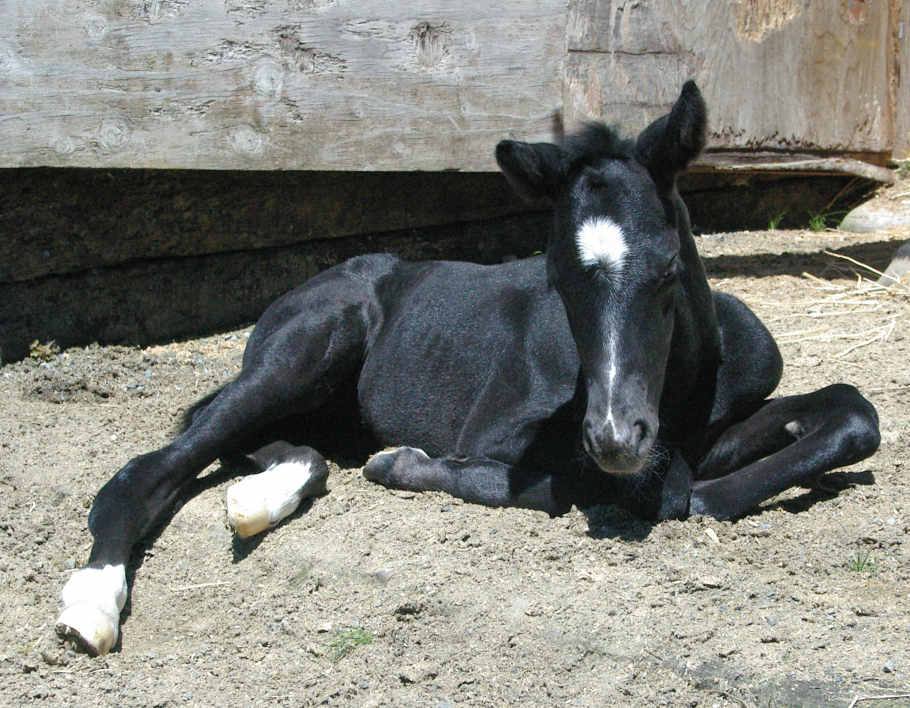 This filly is the "spitting image" of her sire as a foal, right down to the markings.